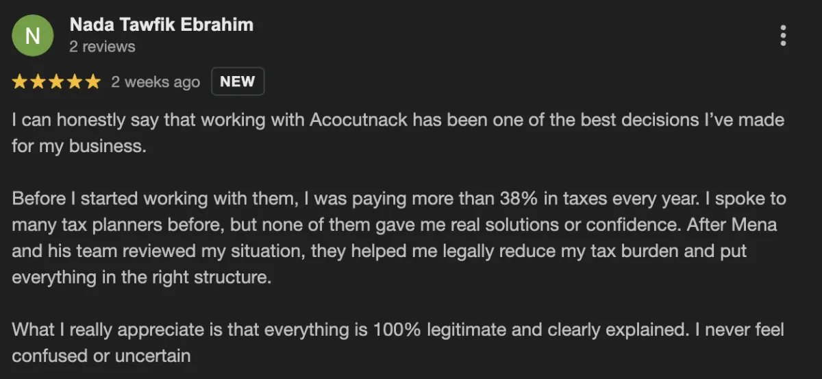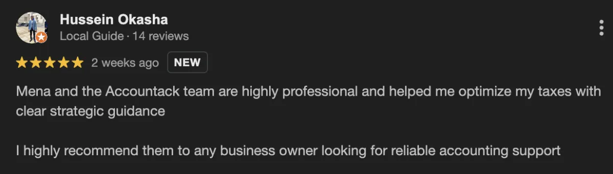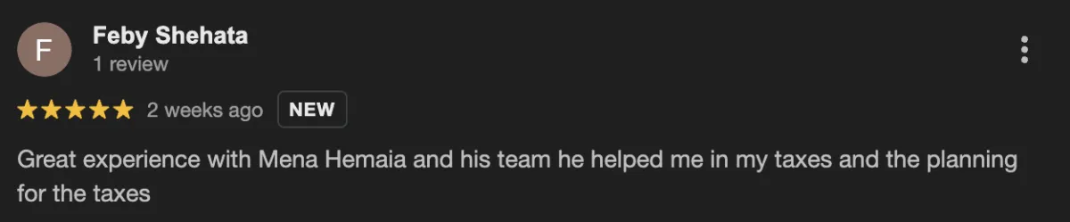 Accountack CPA, led by Mena Hemaia (CPA, CIA), is a digital-first financial firm with specialized agents across industries. We combine top-tier expertise with cultural understanding, making us the trusted partner for Arab entrepreneurs and professionals who want to grow wealth while paying less in taxes.